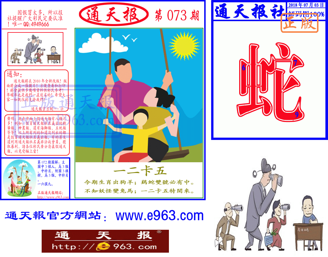 ┫第073期┣ ==┋正版通天报┋ ==